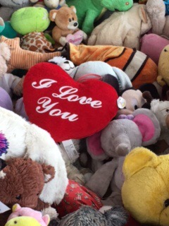 We walked up the steps – in the middle of the bandstand is a huge pile of of soft toys. Hundreds of teddy bears and other furry animals. It took my breath away. Each one was an expression of sympathy from family, friends and fellow humans. Not all of the victims were children – but these soft toys were for every one – whatever their age. All of them as vulnerable and loved as children. Some wore messages – one simply said “I love you”‘.
