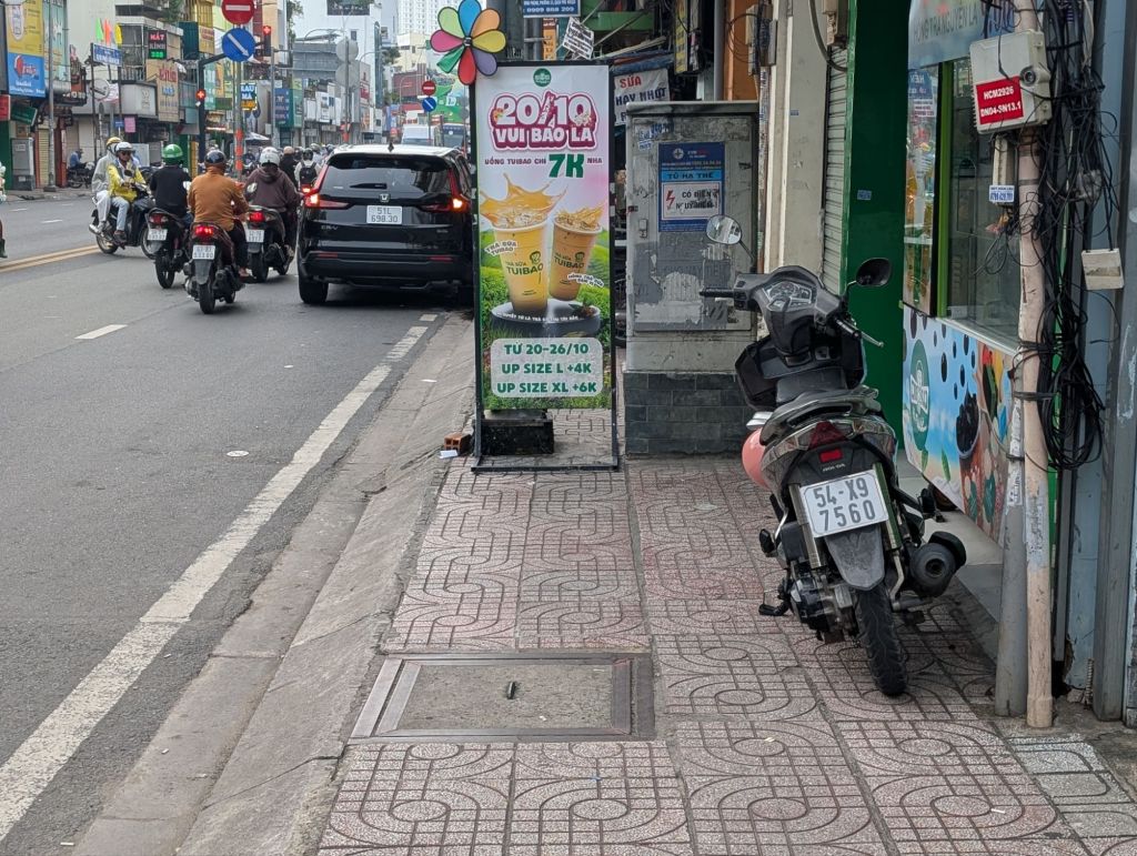 The pavements are simply not designed for walking along. They are there for street food sellers, bags of rubbish, piles of bricks, shop displays or simply people hanging out on plastic chairs drinking coffee or smoking a cigarette.